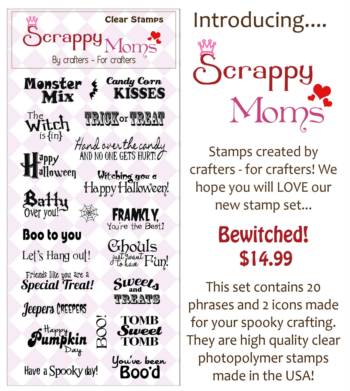 Be sure to visit the all of the Scrappy Moms Stamps Design Team all during this week for new projects! AND... please join us tomorrow for a HALLOWEEN HOP! :)